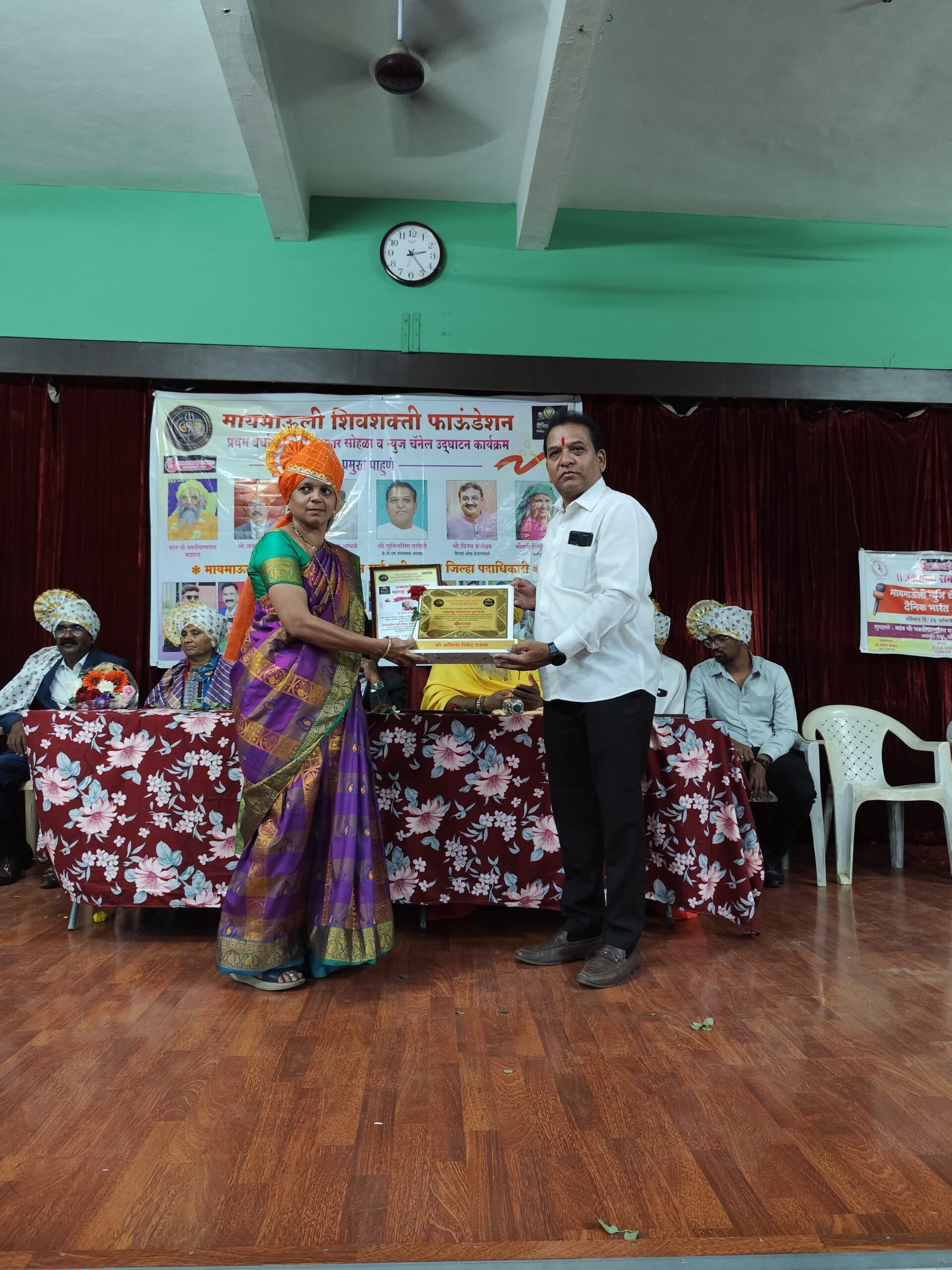 नाशिक. मायमाऊली शिवशक्ती फाउंडेशन व दैनिक भारत नॅशनल चैनल चे उद्घाटन तर्फे दिला जाणारा महाराष्ट्र गौरवरत्न हा राज्यस्तरीय सन्मान यावर्षी सामाजिक कार्यकर्ते सौ अनिता शैलेंद्र रावळ याना सन्मानित करण्यात आले. त्यांनी केलेल्या उल्लखणीय कार्याची दखल घेत हा सन्मान देण्यात आला. हा पुरस्कार महंत डॉ श्री भक्तीचरणदास महाराज आखाडा प्रमुख अध्यक्ष ,”कोकण प्रदेश अध्यक्ष -प्रेस संपादक व पत्रकार सेवा संघ महाराष्ट्र श्री जयप्रकाश पवार सर, मायमाऊली शिवशक्ती फाउंडेशनचे अध्यक्ष डॉ. संदीप काकड, मार्गदर्शक सिंधुबाई काकड, कर्तव्यदक्ष पोलीस मित्र फाउंडेशनचे अध्यक्ष श्री सुनील सिंग परदेशी, जेष्ठ वकील आडवोकेट श्री विलास आंधळे तसेच मायमाऊली न्यूज चे संपादक डॉ. शाम जाधव, हरिभक्त परायण याचे श्री रामभाऊ आवारे , राष्ट्रीय महिला अध्यक्षा सौ रेखा काकड , राष्ट्रीय युवा अध्यक्ष चि. साहिल काकड, सौ राजनंदिनी आहिरे, वैशाली सकपाळे , डॉ.प्राजक्ता जठार,सौ मेघा शिंपी,रमेश गिरी वंदे महाराष्ट्र न्यूज उपसंपादक नाशिक, सौ कल्पनाताई सोनार, योग गुरु बाळासाहेब मोकळ, संगीता मिसाळ अहिल्यानगर, अँकर अश्विनी पुरी, वामन शिंदे वंदे महाराष्ट्र न्यूज प्रतिनिधी बागलाण सटाणा भास्कर सायमन नेवासा जेष्ठ कवी व चंदन बाफना अहिल्यानगर व मायमाऊली शिवशक्ती फौंडेशन सर्व पदाधिकारी आदी मान्यवर या प्रसंगी उपस्थित होते.