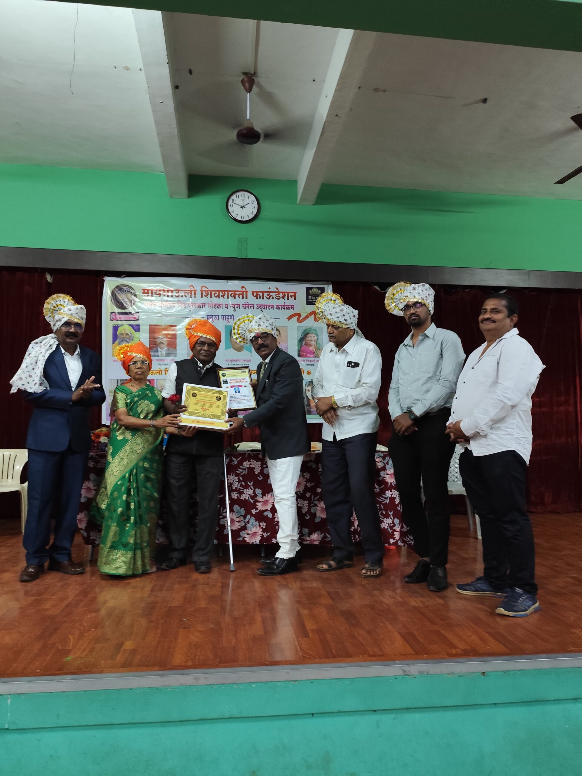 नाशिक. मायमाऊली शिवशक्ती फाउंडेशन व दैनिक भारत नॅशनल चैनल चे उद्घाटन तर्फे दिला जाणारा महाराष्ट्र गौरवरत्न हा राज्यस्तरीय सन्मान यावर्षी जेष्ठ साहित्यिक सामाजिक कार्यकर्ते सायमन भारस्कर यांना सन्मानित करण्यात आले. त्यांनी केलेल्या उल्लखणीय कार्याची दखल घेत हा सन्मान देण्यात आला. हा पुरस्कार महंत डॉ श्री भक्तीचरणदास महाराज आखाडा प्रमुख अध्यक्ष ,”कोकण प्रदेश अध्यक्ष -प्रेस संपादक व पत्रकार सेवा संघ महाराष्ट्र श्री जयप्रकाश पवार सर, मायमाऊली शिवशक्ती फाउंडेशनचे अध्यक्ष डॉ. संदीप काकड, मार्गदर्शक सिंधुबाई काकड, कर्तव्यदक्ष पोलीस मित्र फाउंडेशनचे अध्यक्ष श्री सुनील सिंग परदेशी, जेष्ठ वकील आडवोकेट श्री विलास आंधळे तसेच मायमाऊली न्यूज चे संपादक डॉ. शाम जाधव, हरिभक्त परायण याचे श्री रामभाऊ आवारे , राष्ट्रीय महिला अध्यक्षा सौ रेखा काकड , राष्ट्रीय युवा अध्यक्ष चि. साहिल काकड, सौ राजनंदिनी आहिरे, वैशाली सकपाळे , डॉ.प्राजक्ता जठार,सौ मेघा शिंपी,रमेश गिरी वंदे महाराष्ट्र न्यूज उपसंपादक नाशिक, सौ कल्पनाताई सोनार, योग गुरु बाळासाहेब मोकळ, संगीता मिसाळ अहिल्यानगर, अँकर अश्विनी पुरी, वामन शिंदे वंदे महाराष्ट्र न्यूज प्रतिनिधी बागलाण सटाणा भास्कर सायमन नेवासा जेष्ठ कवी व चंदन बाफना अहिल्यानगर व मायमाऊली शिवशक्ती फौंडेशन सर्व पदाधिकारी आदी मान्यवर या प्रसंगी उपस्थित होते.