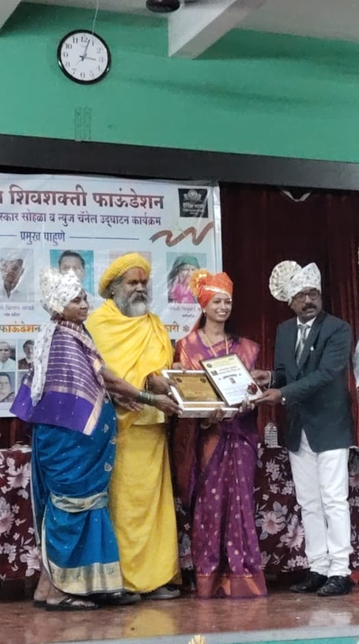 नाशिक. मायमाऊली शिवशक्ती फाउंडेशन व दैनिक भारत नॅशनल चैनल चे उद्घाटन तर्फे दिला जाणारा महाराष्ट्र गौरवरत्न हा राज्यस्तरीय सन्मान यावर्षी आध्यात्मिक क्षेत्रातील ह.भ.प.सौ गायत्री ताई सोनार यांना सन्मानित करण्यात आले. त्यांनी केलेल्या उल्लखणीय कार्याची दखल घेत हा सन्मान देण्यात आला. हा पुरस्कार महंत डॉ श्री भक्तीचरणदास महाराज आखाडा प्रमुख अध्यक्ष ,”कोकण प्रदेश अध्यक्ष -प्रेस संपादक व पत्रकार सेवा संघ महाराष्ट्र श्री जयप्रकाश पवार सर, मायमाऊली शिवशक्ती फाउंडेशनचे अध्यक्ष डॉ. संदीप काकड, मार्गदर्शक सिंधुबाई काकड, कर्तव्यदक्ष पोलीस मित्र फाउंडेशनचे अध्यक्ष श्री सुनील सिंग परदेशी, जेष्ठ वकील आडवोकेट श्री विलास आंधळे तसेच मायमाऊली न्यूज चे संपादक डॉ. शाम जाधव, हरिभक्त परायण याचे श्री रामभाऊ आवारे , राष्ट्रीय महिला अध्यक्षा सौ रेखा काकड , राष्ट्रीय युवा अध्यक्ष चि. साहिल काकड, सौ राजनंदिनी आहिरे, वैशाली सकपाळे , डॉ.प्राजक्ता जठार,सौ मेघा शिंपी,रमेश गिरी वंदे महाराष्ट्र न्यूज उपसंपादक नाशिक, सौ कल्पनाताई सोनार, योग गुरु बाळासाहेब मोकळ, संगीता मिसाळ अहिल्यानगर, अँकर अश्विनी पुरी, वामन शिंदे वंदे महाराष्ट्र न्यूज प्रतिनिधी बागलाण सटाणा भास्कर सायमन नेवासा जेष्ठ कवी व चंदन बाफना अहिल्यानगर व मायमाऊली शिवशक्ती फौंडेशन सर्व पदाधिकारी आदी मान्यवर या प्रसंगी उपस्थित होते.
