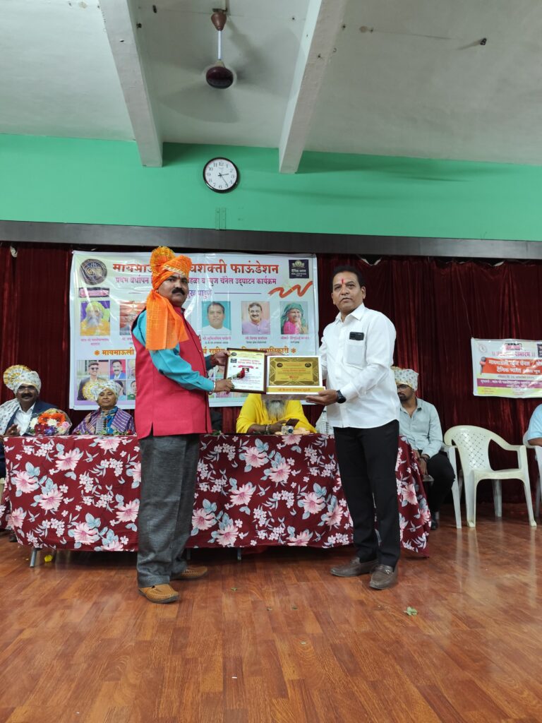 नाशिक. मायमाऊली शिवशक्ती फाउंडेशन व दैनिक भारत नॅशनल चैनल चे उद्घाटन तर्फे दिला जाणारा महाराष्ट्र गौरवरत्न हा राज्यस्तरीय सन्मान यावर्षी शैक्षणिक व सामाजिक कार्यकर्ते. श्री कैलास गणपत गुरुळे यांना सन्मानित करण्यात आले. त्यांनी केलेल्या उल्लखणीय कार्याची दखल घेत हा सन्मान देण्यात आला. हा पुरस्कार महंत डॉ श्री भक्तीचरणदास महाराज आखाडा प्रमुख अध्यक्ष ,”कोकण प्रदेश अध्यक्ष -प्रेस संपादक व पत्रकार सेवा संघ महाराष्ट्र श्री जयप्रकाश पवार सर, मायमाऊली शिवशक्ती फाउंडेशनचे अध्यक्ष डॉ. संदीप काकड, मार्गदर्शक सिंधुबाई काकड, कर्तव्यदक्ष पोलीस मित्र फाउंडेशनचे अध्यक्ष श्री सुनील सिंग परदेशी, जेष्ठ वकील आडवोकेट श्री विलास आंधळे तसेच मायमाऊली न्यूज चे संपादक डॉ. शाम जाधव, हरिभक्त परायण याचे श्री रामभाऊ आवारे , राष्ट्रीय महिला अध्यक्षा सौ रेखा काकड , राष्ट्रीय युवा अध्यक्ष चि. साहिल काकड, सौ राजनंदिनी आहिरे, वैशाली सकपाळे , डॉ.प्राजक्ता जठार,सौ मेघा शिंपी,रमेश गिरी वंदे महाराष्ट्र न्यूज उपसंपादक नाशिक, सौ कल्पनाताई सोनार, योग गुरु बाळासाहेब मोकळ, संगीता मिसाळ अहिल्यानगर, अँकर अश्विनी पुरी, वामन शिंदे वंदे महाराष्ट्र न्यूज प्रतिनिधी बागलाण सटाणा भास्कर सायमन नेवासा जेष्ठ कवी व चंदन बाफना अहिल्यानगर व मायमाऊली शिवशक्ती फौंडेशन सर्व पदाधिकारी आदी मान्यवर या प्रसंगी उपस्थित होते.
