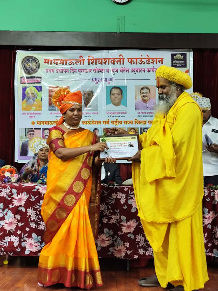 नाशिक. मायमाऊली शिवशक्ती फाउंडेशन व दैनिक भारत नॅशनल चैनल चे उद्घाटन तर्फे दिला जाणारा महाराष्ट्र गौरवरत्न हा राज्यस्तरीय सन्मान यावर्षी शैक्षणिक व सामाजिक कार्यकर्ते. श्रीमती प्रीती म्हसदे यांना सन्मानित करण्यात आले. त्यांनी केलेल्या उल्लखणीय कार्याची दखल घेत हा सन्मान देण्यात आला. हा पुरस्कार महंत डॉ श्री भक्तीचरणदास महाराज आखाडा प्रमुख अध्यक्ष ,”कोकण प्रदेश अध्यक्ष -प्रेस संपादक व पत्रकार सेवा संघ महाराष्ट्र श्री जयप्रकाश पवार सर, मायमाऊली शिवशक्ती फाउंडेशनचे अध्यक्ष डॉ. संदीप काकड, मार्गदर्शक सिंधुबाई काकड, कर्तव्यदक्ष पोलीस मित्र फाउंडेशनचे अध्यक्ष श्री सुनील सिंग परदेशी, जेष्ठ वकील आडवोकेट श्री विलास आंधळे तसेच मायमाऊली न्यूज चे संपादक डॉ. शाम जाधव, मायमाऊली न्यूज कार्यकारी संपादक श्री मनिष मुथा, हरिभक्त परायण याचे श्री रामभाऊ आवारे , राष्ट्रीय महिला अध्यक्षा सौ रेखा काकड , राष्ट्रीय युवा अध्यक्ष चि. साहिल काकड, सौ राजनंदिनी आहिरे, वैशाली सकपाळे , डॉ.प्राजक्ता जठार,सौ मेघा शिंपी,रमेश गिरी वंदे महाराष्ट्र न्यूज उपसंपादक नाशिक, सौ कल्पनाताई सोनार, योग गुरु बाळासाहेब मोकळ, संगीता मिसाळ अहिल्यानगर, अँकर अश्विनी पुरी, वामन शिंदे वंदे महाराष्ट्र न्यूज प्रतिनिधी बागलाण सटाणा भास्कर सायमन नेवासा जेष्ठ कवी व चंदन बाफना अहिल्यानगर व मायमाऊली शिवशक्ती फौंडेशन सर्व पदाधिकारी आदी मान्यवर या प्रसंगी उपस्थित होते.