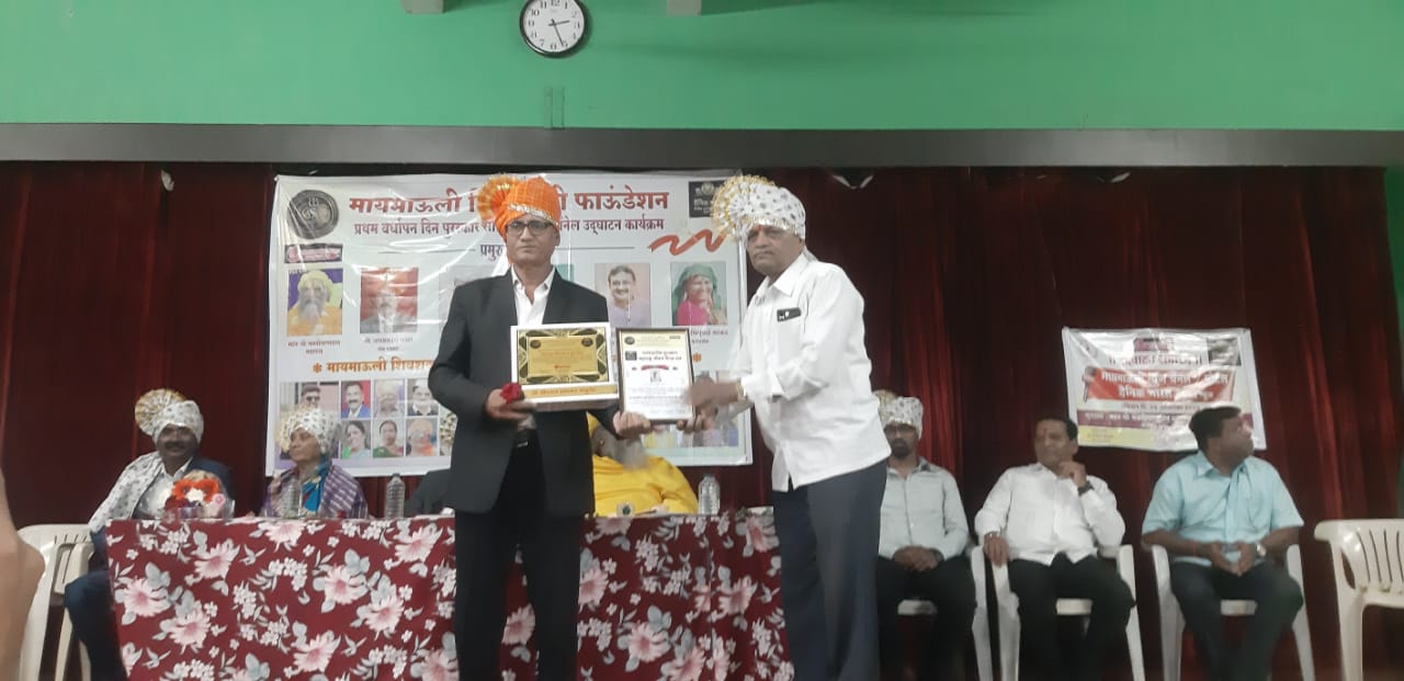 नाशिक. मायमाऊली शिवशक्ती फाउंडेशन व दैनिक भारत नॅशनल चैनल चे उद्घाटन तर्फे दिला जाणारा महाराष्ट्र गौरवरत्न हा राज्यस्तरीय सन्मान यावर्षी सामाजिक कार्यकर्ते श्री खैरनार प्रभाकर पांडुरंग सन्मानित करण्यात आले. त्यांनी केलेल्या उल्लखणीय कार्याची दखल घेत हा सन्मान देण्यात आला. हा पुरस्कार महंत डॉ श्री भक्तीचरणदास महाराज आखाडा प्रमुख अध्यक्ष ,”कोकण प्रदेश अध्यक्ष -प्रेस संपादक व पत्रकार सेवा संघ महाराष्ट्र श्री जयप्रकाश पवार सर, मायमाऊली शिवशक्ती फाउंडेशनचे अध्यक्ष डॉ. संदीप काकड, मार्गदर्शक सिंधुबाई काकड, कर्तव्यदक्ष पोलीस मित्र फाउंडेशनचे अध्यक्ष श्री सुनील सिंग परदेशी, जेष्ठ वकील आडवोकेट श्री विलास आंधळे तसेच मायमाऊली न्यूज चे संपादक डॉ. शाम जाधव, हरिभक्त परायण याचे श्री रामभाऊ आवारे , राष्ट्रीय महिला अध्यक्षा सौ रेखा काकड , राष्ट्रीय युवा अध्यक्ष चि. साहिल काकड, सौ राजनंदिनी आहिरे, वैशाली सकपाळे , डॉ.प्राजक्ता जठार,सौ मेघा शिंपी,रमेश गिरी वंदे महाराष्ट्र न्यूज उपसंपादक नाशिक, सौ कल्पनाताई सोनार, योग गुरु बाळासाहेब मोकळ, संगीता मिसाळ अहिल्यानगर, अँकर अश्विनी पुरी, वामन शिंदे वंदे महाराष्ट्र न्यूज प्रतिनिधी बागलाण सटाणा भास्कर सायमन नेवासा जेष्ठ कवी व चंदन बाफना अहिल्यानगर व मायमाऊली शिवशक्ती फौंडेशन सर्व पदाधिकारी आदी मान्यवर या प्रसंगी उपस्थित होते.