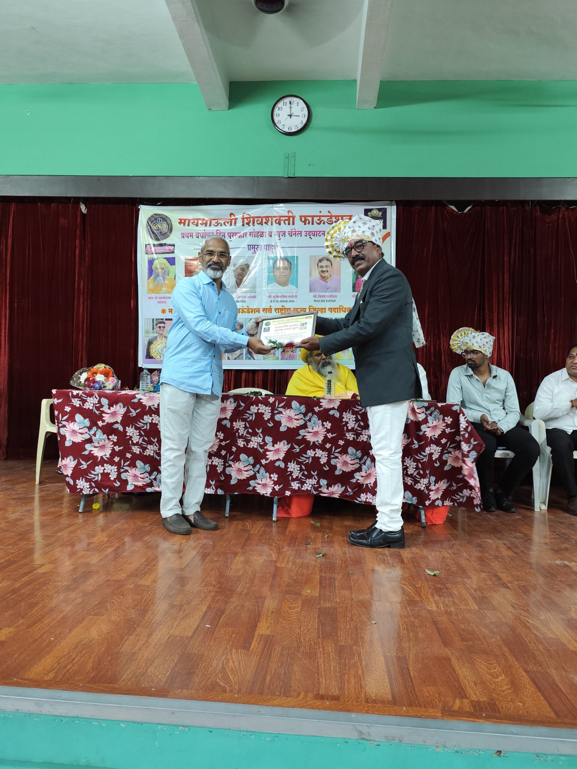 नाशिक. मायमाऊली शिवशक्ती फाउंडेशन व दैनिक भारत नॅशनल चैनल चे उद्घाटन तर्फे दिला जाणारा महाराष्ट्र गौरवरत्न हा राज्यस्तरीय सन्मान यावर्षी सामाजिक कार्यकर्ते व माणुसकी बेघर निवारा व पुनर्वसन केंद्र नाशिक चे संचालक श्री यशवंत लाकडे यांना सन्मानित करण्यात आले. त्यांनी केलेल्या उल्लखणीय कार्याची दखल घेत हा सन्मान देण्यात आला. हा पुरस्कार महंत डॉ श्री भक्तीचरणदास महाराज आखाडा प्रमुख अध्यक्ष ,”कोकण प्रदेश अध्यक्ष -प्रेस संपादक व पत्रकार सेवा संघ महाराष्ट्र श्री जयप्रकाश पवार सर, मायमाऊली शिवशक्ती फाउंडेशनचे अध्यक्ष डॉ. संदीप काकड, मार्गदर्शक सिंधुबाई काकड, कर्तव्यदक्ष पोलीस मित्र फाउंडेशनचे अध्यक्ष श्री सुनील सिंग परदेशी, जेष्ठ वकील आडवोकेट श्री विलास आंधळे तसेच मायमाऊली न्यूज चे संपादक डॉ. शाम जाधव, मायमाऊली न्यूज कार्यकारी संपादक श्री मनिष मुथा हरिभक्त परायण याचे श्री रामभाऊ आवारे , राष्ट्रीय महिला अध्यक्षा सौ रेखा काकड , राष्ट्रीय युवा अध्यक्ष चि. साहिल काकड, सौ राजनंदिनी आहिरे, वैशाली सकपाळे , डॉ.प्राजक्ता जठार,सौ मेघा शिंपी,रमेश गिरी वंदे महाराष्ट्र न्यूज उपसंपादक नाशिक, सौ कल्पनाताई सोनार, योग गुरु बाळासाहेब मोकळ, संगीता मिसाळ अहिल्यानगर, अँकर अश्विनी पुरी, वामन शिंदे वंदे महाराष्ट्र न्यूज प्रतिनिधी बागलाण सटाणा भास्कर सायमन नेवासा जेष्ठ कवी व चंदन बाफना अहिल्यानगर व मायमाऊली शिवशक्ती फौंडेशन सर्व पदाधिकारी आदी मान्यवर या प्रसंगी उपस्थित होते.
