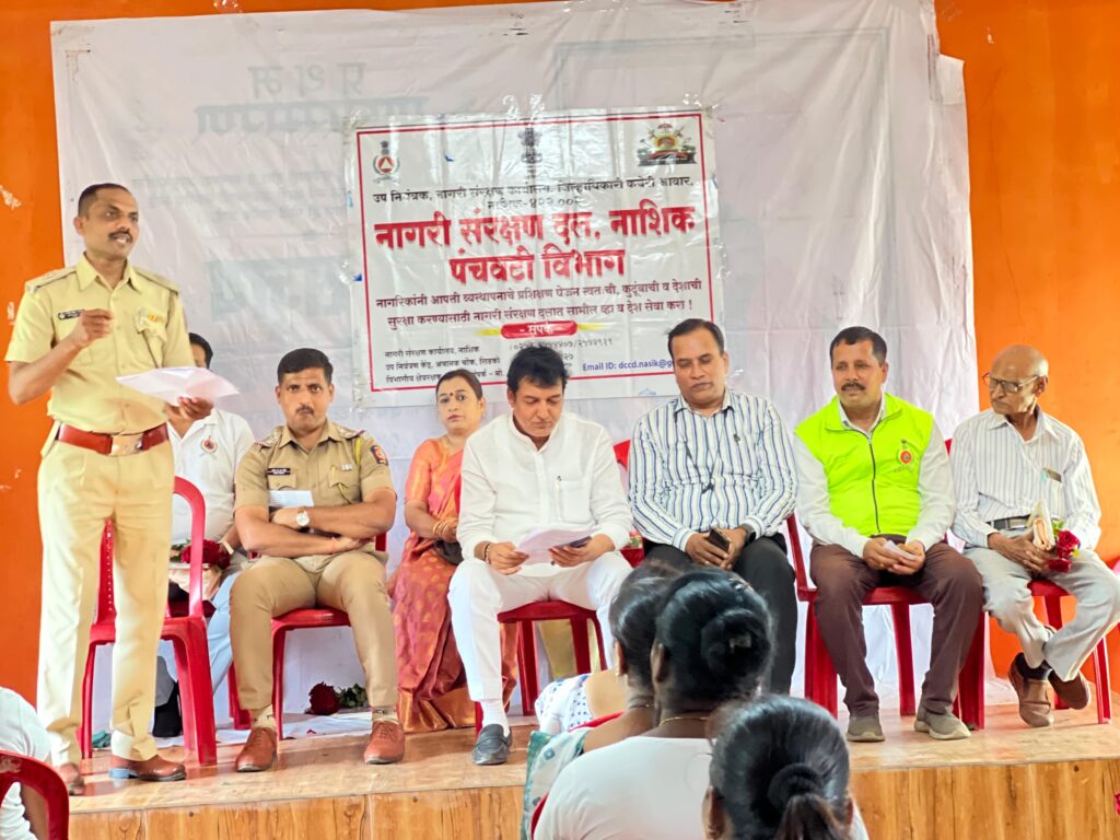 महाराष्ट्र शासन नागरी संरक्षण दल नाशिक पंचवटी विभागातर्फे आडगाव येथील श्री चंद्र मौलेश्वर सभागृहात दि.१५ ते २१ जुलै दरम्यान देशात अचानक येणाऱ्या युद्धजन्य आणि आपत्कालीन परिस्थिती तसेच आगामी काळात होणाऱ्या नाशिक येथील सिंहस्थ कुंभमेळ्याच्या पार्श्वभूमीवर पंचवटी विभागीय क्षेत्ररक्षक मनोहर जगताप यांनी नागरी संरक्षण मूलभूत प्राथमिक पाठ्यक्रमाचे आयोजन केले होते. यात नागरिकांना आपत्ती व्यवस्थापन, आग नियंत्रण,प्रथमोपचार,हवाई हल्ला, विमोचन तसेच बॉम्ब हल्ला,आधुनिक युद्ध तंत्रज्ञान विषयांवर उपनियंत्रक अतुल जगताप,पंचवटी विभागीय क्षेत्ररक्षक मनोहर जगताप यांनी एकूण पाच दिवस प्रात्यक्षिक सहित मार्गदर्शन केले.आज समारोप प्रसंगी आडगाव पोलिस निरीक्षक संजय भिसे यांनी आपत्कालीन स्थितीत नागरी संरक्षण दलाची महत्त्वाची भूमिका असते असे मार्गदर्शन केले तसेच माजी नगरसेवक उद्धव निमसे यांनी आगामी होऊ घातलेल्या कुंभमेळ्याच्या पार्श्वभूमीवर पंचवटी विभागातील जास्तीत जास्त नागरिकांनी नागरी संरक्षण दलाचे प्रशिक्षण घेऊन कार्य करावे असे मार्गदर्शन केले. कार्यक्रमाचे अध्यक्ष उपनियंत्रक अतुल जगताप यांनी राष्ट्रहितासाठी कार्य करण्याची संधी आपणास नागरी संरक्षण दलात भरती होत करता येईल आणि आपत्ती काळात आपण स्वतः चे आणि इतरांचे संरक्षणकरू शकतात असे मार्गदर्शन करत शुभेच्छा दिल्या. याप्रसंगी आडगाव पोलीस निरीक्षक संजय पिसे, माजी नगरसेवक उद्धव निमसे, नागरी संरक्षण माजी मुख्य क्षेत्ररक्षक डॉ सुभाष काळे, भद्रकाली विभागीय क्षेत्ररक्षिका मंगला काकड,अंबड विभागीय क्षेत्ररक्षक योगेंद्र पाटील,पंचवटी विभागीय क्षेत्ररक्षक मनोहर जगताप, देवळाली कॅम्प विभागीय क्षेत्ररक्षक भूपेंद्र जाधव, सातपूर विभागीय क्षेत्ररक्षक शुभम क्षीरसागर, स्वयंसेवक आणि नागरिक उपस्थित होते. कार्यक्रमाचे सूत्रसंचलन मनोहर जगताप आणि आभार अशोक चौधरी यांनी मानले.