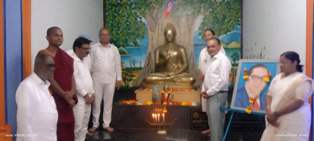 सांगली आज दिनांक २०जुलै २०२५ रोजी अथर्व चंद्रकांत सांगलीकर चॅरिटेबल ट्रस्ट संचलित धम्म भूमी गुगवाड चे अध्यक्ष, सी. आर. सांगलीकर साहेब , डॉ.बाबासाहेब आंबेडकर स्कूल, जालंधर पंजाब येथील प्रिन्सिपॉल चंचल बोध मॅडम, प्राध्यापक हुसेन लाल यांनी सायंकाळी साडे सात वाजता सदिच्छा भेट दिली.विहाराचे खजिनदार एस. आर. माने सर यांनी प्रास्ताविक करून सर्व उपस्थितांचे स्वागत केले. विहाराच्या उपाध्यक्षा आयूष्यमती सुनिता धम्म कीर्ती यांचे हस्ते प्रिन्सिपॉल चंचल बोध मॅम यांचा पुष्पगुच्छ देऊन सत्कार करण्यात आला. माने सर यांनी इतर मान्यवरांचा पुष्पगुच्छ देऊन सत्कार केला. या सत्काराला उत्तर देताना प्रिन्सिपॉल चंचल मॅम यांनी विहाराचे कामकाज चांगल्या प्रकारे आणि उत्कृष्ट चालले असून डॉक्टर बाबासाहेब आंबेडकर लिखित बुद्ध आणि त्याचा धम्म या ग्रंथावर माहे ६ जुलै रोजी परीक्षा आयोजित केली होती या परीक्षेसाठी सर्व जाती जमातीतील परीक्षार्थी /विद्यार्थ्यां यांनी भाग घेतला होता. आणि त्याच दिवशी निकाल ही जाहीर केला. १० जुलै २०२५ आषाढ पौर्णिमा प्रथम धम्मचक्र पवनसुत रोजीच्या कार्यक्रमात प्रथम,द्वितीय आणि तृतीय क्रमांकाने उत्तीर्ण झालेल्यांना पुरस्कार प्रदान करण्यात आला, त्याबाबत सर्वांचे अभिनंदन करून सर्वांना शुभेच्छा दिल्या.डॉक्टर बाबासाहेब आंबेडकर यांनी २१ जुलै, १९४२ रोजी “शिका संघटित व्हा आणि संघर्ष” करा हा जो संदेश दिलेला आहे, त्याप्रमाणे सर्वांना सुशिक्षित बनवून संघटित होऊन अन्याय विरुद्ध संघर्ष करण्याची वेळ आलेली आहे. त्याची ज्योत संपूर्ण भारतभर नव्हे तर जगभर प्रज्वलित करण्याचा संदेश दिला. विहाराचे संचालक , सदस्य,उपासक उपासीका यांनी जालंदर येथे जरूर भेट द्यावी असे त्यांनी आवाहन केले.प्रसिद्ध उद्योजक सी.आर. सांगलीकर यांनी विहाराचे कामकाज अत्यंत चांगल्या प्रकारे कार्यरत असून सर्व कार्यक्रम नियोजन पद्धतीने घेत असतात याबद्दल कौतुक केले. विहाराच्या उपाध्यक्षा आयूष्यमती सुनिता धम्म कीर्ती यांनी कार्यक्रमास उपस्थित राहिल्याबद्दल सर्व पाहुण्यांचे आणि उपस्थितांचे आभार मानले .भंते धम्म बोधी यांनी सर्व उपस्थितांनी धम्म पालन गाथा संपन्न होऊन कार्यक्रमाची सांगता झाली.सदर कार्यक्रमास प्राध्यापक गौतमीपुत्र कांबळे, अध्यक्ष, सेक्युलर मुव्हमेंट महाराष्ट्र राज्य, दिप स्तंभ चे माजी अध्यक्ष भारत शिंदे, प्रकाश आवारे, दयानंद कोलप, स्टेट बँकेचे मॅनेजर बाळासाहेब कुदळे साहेब, जगन्नाथ आठवले, एस. आर. माने, बोधिसत्व धम्म रत्न बोरखडे मामा, महेश शिवशरण (धम्मभूमी गुगवाड चे सदस्य,)सुजाता चंदनशिवे, विद्या राणी कांबळे ताई, हनुमंत साबळे,बाळासाहेब गायकवाड, पवन कदम,तसेच सारनाथ बुद्