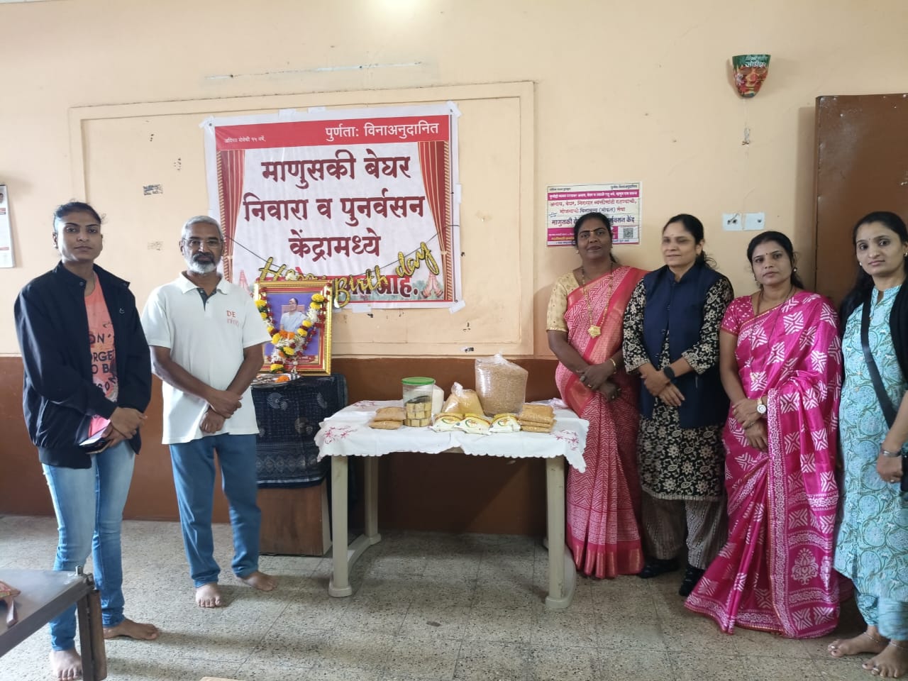 दि 27 जुलै 2025 रोजी नाशिक येथे एन बी.पगारे सेवानिवृत्त नियंत्रण अधिकारी करन्सी नोट प्रेस नाशिक रोड यांच्या पत्नी व ऍड उषाताई पगारे (मायमाऊली शिवशक्ती फौंडेशन कायदेशीर सल्लागार ) यांच्या आई कुसुमताई एन. पगारे यांच्या वाढदिवसाच्या निमित्त गृहपयोगी व अन्नदान वाटप करण्यात आले. पंचवटी गोदाघाट येथे माणुसकी बेघर निवारा व पुनर्वसन केंद्र येथील वास्तव्यास असलेले बेघर लोकांना अन्नदान करण्यात आले व गृहपयोगी हि देण्यात आला. यावेळी मायमाऊली शिवशक्ती फौंडेशन च्या महाराष्ट्र राज्य महिला आध्यक्षा सौ राजनंदिनी आहिरे, उत्तर महाराष्ट्र महिला अध्यक्षा सौ सुनीता धनतोले, उत्तर महाराष्ट्र कायदेशीर सल्लागार ऍड. उषाताई पगारे, सदस्या सौ पूजा दुदेकर, सदस्या कु. प्रतीक्षा आहिरे, माणुसकी बेघर केंद्र संचालक यशवंत नाशिककर आणि मायमाऊली शिवशक्ती फौंडेशन संस्थापक आध्यक्ष डॉ संदीप काकड उपस्थित होते.