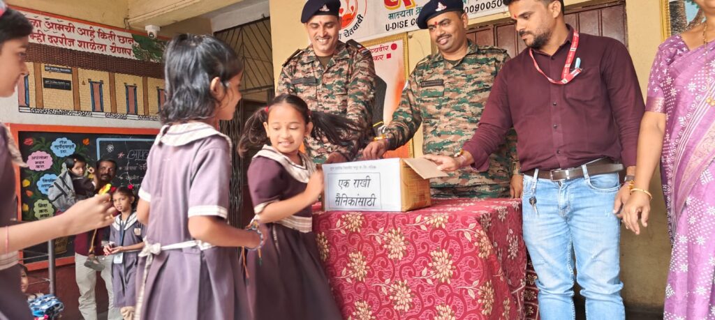 भगूर. आज दिनांक ११/८/२०२५ रोजी नूतन प्राथमिक विद्यामंदिर भगूर शाळेत जागतिक आदिवासी दिन व एक राखी सैनिकांसाठी उपक्रमांतर्गत विद्यार्थ्यांनी पर्यावरण पूरक राख्या बनवून ३१७ साठा बॅटरी देवळाली कॅम्प येथील सैनिकांना आरोग्य सेवक यांना राखी बांधून रक्षाबंधन हा सण मोठ्या उत्साहात साजरा केला. तसेच यावेळी एक वृक्ष आई या उपक्रमांतर्गत परिसरातील वृक्षाला सैनिक व आरोग्य सेवक तसेच शाळेतील मुख्याध्यापिका रंजना सोनवणे व सर्व शिक्षक वृंद आणि विद्यार्थी यांच्या उपस्थितीत राखी बांधली. यावेळी सैनिकांनी विद्यार्थ्यांना रक्षाबंधनचा शुभ संदेश दिला व गिफ्ट म्हणून खाऊ चे वाटप केले. अशाप्रकारे आदिवासी दिन अतिशय उत्साहात रक्षाबंधन सण साजरा करण्यात आला.