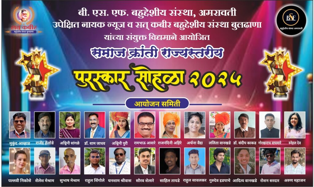 अमरावती दि.17 ऑगस्ट 2025 रोजी समाजक्रांती राज्यस्तरीय पुरस्कार सोहळा संपन्न झाला. बी एस एफ बहुउद्देशीय संस्था अमरावती पत्रकार क्षेत्रात नावलौकिक मिळविलेल्या सौ सुरेखा गांगुर्डे अमरावती येथे यांना समाज क्रांती राज्यस्तरीय पुरस्काराने सन्मानित करण्यात आले. यावेळी अनेक फिल्म स्टार, रील स्टार, निर्माते दिग्दर्शक, अभिनेता अभिनेत्री यांच्या उपस्थिती मध्ये व संस्थापक अध्यक्ष भूषण सरदार यांच्या वतिने हा पुरस्कार प्रधान करण्यात आला.१७ ऑगस्ट ऐतिहासिक दिवस…! निमित्त राष्ट्रसंत स्वच्छतेचे जनक गाडगे बाबांच्या पुण्यपावन भुमी अमरावती मध्ये समाज क्रांती पुरस्कार सोहळा पार पडलायास सबंध विश्वाला ज्यांनी स्वच्छतेचा महामंत्र दिला… अज्ञान, अंधश्रद्धा, निरक्षरता यावर जनप्रबोधन केले… समाजाचे उत्खनन करून समाजप्रबोधन करून जागृती केली. असे महान संतश्रेष्ठ आदरणीय गाडगेबाबा च्या छत्रपती शिवाजी महाराज, शाहूमहाराज, महात्मा जोतीराव फुले, सावित्रीमाई फुले, विश्वरत्न डॉ. बाबासाहेब आंबेडकर, माता रमाई लोकशाहीर आण्णाभाऊ, राष्ट्रसंत कबीर महाराज अशा विविध राष्ट्रपुरुषांच्या पावन राष्ट्रात हा सोहळा संपन्न झाला त्यांना नवनवीन सामाजिक उपक्रमांची आवड असल्याने सामाजिक कार्यात व सदैव पत्रकार क्षेत्रात अग्रस्थानी असतात.सौ सुरेखा गांगुर्डे यांनी आपल्याला मिळालेला हा समाज क्रांती पुरस्कार माझ्या पूर्ण फॅमिली ला समर्पित केला आहे अशी माहिती त्यांनी प्रतिनिधींशी बोलताना दिली आहे.