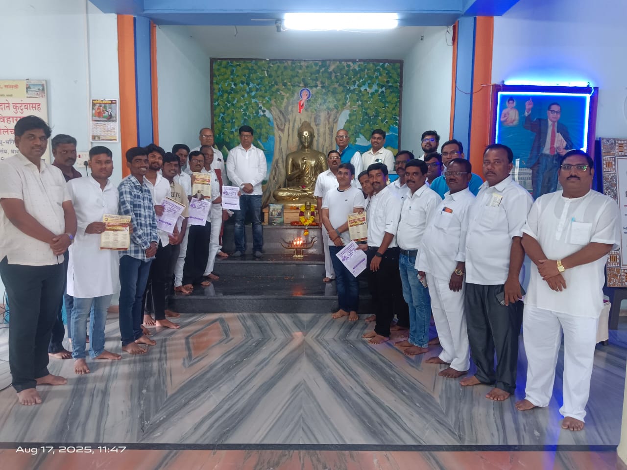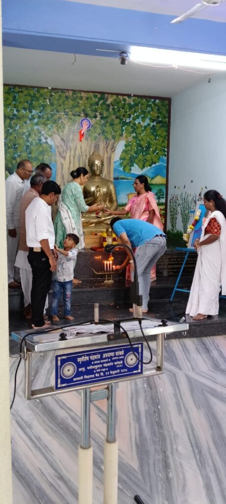 सांगली. बौद्ध धम्मा संस्कार संघ श्रावस्ती विहार येथे दिनांक १७/८/२०२५ रोजी रविवारी सकाळी ११:०० वाजता प्रमुख पाहुणे डॉक्टर किशोर वाळूंजे ,मुंबई युनिव्हर्सिटी आणि माजी नगरसेविका शेवंता ताई वाघमारे यांच्या हस्ते आपले आदर्श महाकारुणिक तथागत भगवान बुद्ध आणि परम पूज्य बोधी सत्व डॉ बाबासाहेब आंबेडकर यांच्या आदर्शाची धूप, दीप, पुष्प यांनी पूजन करून त्रि -सरण आणि पंचशील ग्रहण करून कार्यक्रमास सुरुवात झाली. प्रास्ताविक आणि स्वागत विहाराचे माजी सचिव आयुष्यमान प्राध्यापक अशोक भटकर यांनी केले. आयु. शेवंता ताई वाघमारे माजी नगरसेविका यांच्या हस्ते प्रमुख पाहुणे ऍड. डॉ. किशोर वाळुंजे यांचा पुष्पगुच्छ देऊन सत्कार करण्यात आला. तसेच आयु. सखाराम खरटमोल यांचा सत्कार आयु. जगन्नाथ आठवले यांनी केला आयु.ऍड. प्रमोद कटाने याचा सत्कार आयु. पवन वाघमारे यांनी केला. त्यानंतर प्रमुख पाहुणे वाळुंजे यांनी तथागत भगवान बुद्ध यांचे मनाचे तत्त्वज्ञान आणि परदेशी उच्च शिक्षण याचे महत्त्व आणि उपयोगिता याबाबत सविस्तर धम्मदेशना दिली.सर्व उपस्थित प्रमुख पाहुण्यांचे आभार विहाराचे सह खजिनदार जगन्नाथ आठवले साहेब यांनी मानले.धम्म पालन गाथा संपन्न होउन कार्यक्रमाची सांगता झाली.सदर कार्यक्रमांस आयु.संजय घाडगे सर संचालक संचालिका आयु.. दीपमाला कांबळे,ऍड. सिद्धार्थ काकडे,ऍड.साबळे सर, ऍड. सन्मित्र भटकर, माळाप्पा कदम, जनार्दन जयकर, जेष्ठ समाजसेविका आयु., संगीताताई शिंदे, अमर कांबळे, निखिल आठवले, आनंदा कवठेकर, इत्यादी अनेक उपासक उपासिका उपस्थित होते.