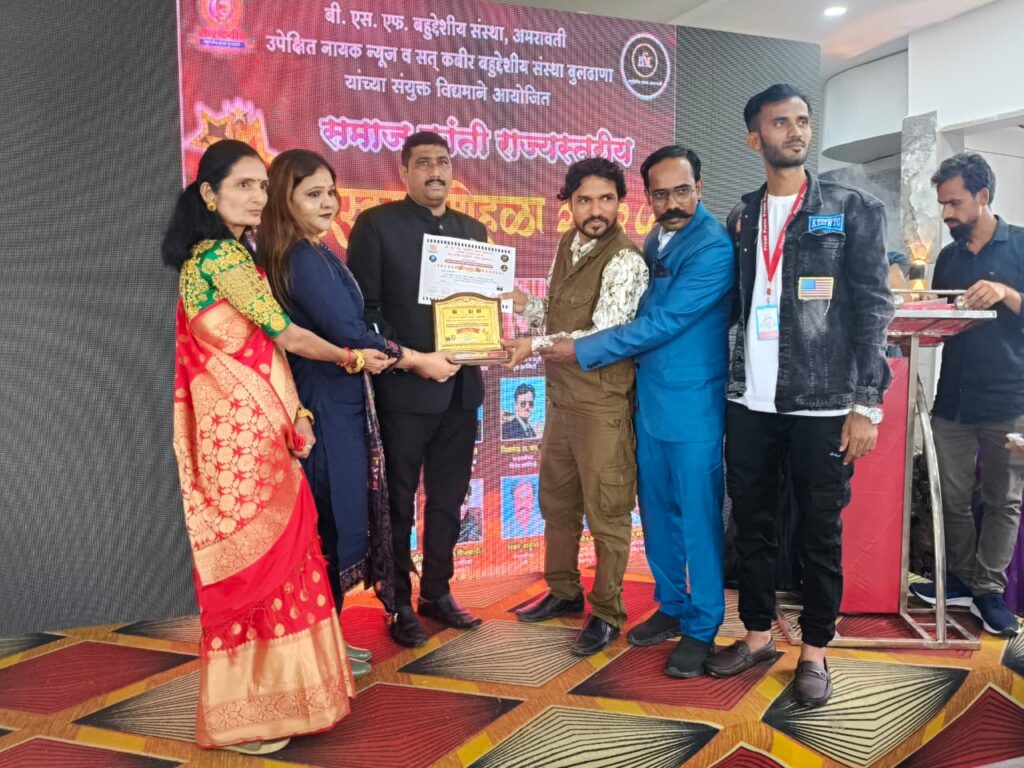 अमरावती दि. 17 ऑगस्ट 2025 रोजी समाजक्रांती राज्यस्तरीय पुरस्कार सोहळा संपन्न झाला. बी एस एफ बहुउद्देशीय संस्था अमरावती उपेक्षित नायक न्यूज व संत कबीर बहुउद्देशीय संस्था बुलढाणा यांच्या संयुक्त विध्यमानाने आयोजित साजक्रांती पुरस्कार सोहळ्यात नाशिक चे सामाजिक कार्यकर्ते म्हणून नावलौकिक असलेले श्री नितीन डांगळे बौद्धिस्ट स्कूल अध्यक्ष व सामाजिक कार्यकर्ते यांना समाज क्रांती राज्यस्तरीय पुरस्काराने सन्मानित करण्यात आले. यावेळी अनेक फिल्म स्टार, रील स्टार, निर्माते दिग्दर्शक, अभिनेता अभिनेत्री यांच्या उपस्थिती मध्ये व संस्थापक अध्यक्ष भूषण सरदार यांच्या वतिने हा पुरस्कार प्रधान करण्यात आला.१७ ऑगस्ट ऐतिहासिक दिवस…! निमित्त राष्ट्रसंत स्वच्छतेचे जनक गाडगे बाबांच्या पुण्यपावन भुमी अमरावती मध्ये समाज क्रांती पुरस्कार सोहळा पार पडलायास सबंध विश्वाला ज्यांनी स्वच्छतेचा महामंत्र दिला… अज्ञान, अंधश्रद्धा, निरक्षरता यावर जनप्रबोधन केले… समाजाचे उत्खनन करून समाजप्रबोधन करून जागृती केली. असे महान संतश्रेष्ठ आदरणीय गाडगेबाबा च्या छत्रपती शिवाजी महाराज, शाहूमहाराज, महात्मा जोतीराव फुले, सावित्रीमाई फुले, विश्वरत्न डॉ. बाबासाहेब आंबेडकर, माता रमाई लोकशाहीर आण्णाभाऊ, राष्ट्रसंत कबीर महाराज अशा विविध राष्ट्रपुरुषांच्या पावन राष्ट्रात हा सोहळा संपन्न झाला.