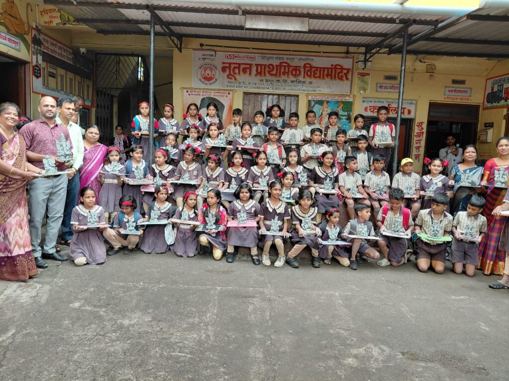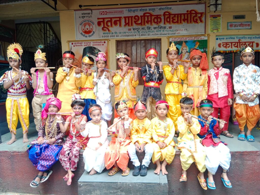 भगूर .आज दिनांक १९/८/२०२५ रोजी नूतन प्राथमिक विद्यामंदिर भगूर शाळेत गणपती उत्सवा निमित्त पर्यावरण पूर क शाडू माती पासून गणपती बनवण्याची कार्यशाळा व शिक्षण मंडळ भगूर संचालित नूतन प्राथमिक विद्यामंदिर व नूतन प्राथमिक पूर्व बालक मंदिर शाळेत कृष्णाष्टमी साजरी करून गोपाळकाला निमित्त दहीहंडी चा उपक्रम राबविण्यात आला .यावेळी शाळेतील सर्व विद्यार्थ्यांनी कृष्ण राधिकाचे वेशभूषा धारण करून त्यावर नृत्य सादर केले. व विद्यार्थ्यांनी दहीहंडी फोडण्याचा आनंद घेतला मुख्याध्यापिका सोनवणे मॅडम व शाळेतील सर्व शिक्षक कर्मचारी वृंद तसेच बालक मंदिर मुख्याध्यापिका श्रीमती देशमुख व शिक्षिका यावेळी उपस्थित होत्या. सर्वांचे सहकार्याने कार्यक्रम अतिशय सुंदर होते पार पाडला. अतिशय उत्साहात पार पडली यावेळी इयत्ता चौथीतील ६० विद्यार्थ्यांनी सहभाग घेऊन गणपती तयार केले गणपती कार्यशाळेसाठी शाळेतील उपशिक्षक श्री. आनंद कस्तुरे सर व श्रीमती भागवत मॅडम यांचे विद्यार्थ्यांना विशेष मार्गदर्शन लाभले . इयत्ता चौथीचे वर्गशिक्षक व शाळेतील सर्व शिक्षकांच्या सहकार्यातून विद्यार्थ्यांनी अतिशय सुंदर गणपती तयार केले. शाळेचा मुख्याध्यापिका सौ. रंजना सोनवणे मॅडम यांनी सर्व विद्यार्थ्यांचे कौतुक केले. यावेळी विद्यार्थ्यांच्या चेहऱ्यावरील आनंद ओसंडून वाहत होता. प्रत्येक विद्यार्थ्यांनी आपल्या मेहनतीची कला व कौशल्य दाखवण्याचा प्रयत्न केला सर्व शिक्षक मुख्याध्यापिका पालक यांनी कौतुकाचा वर्षाव केला