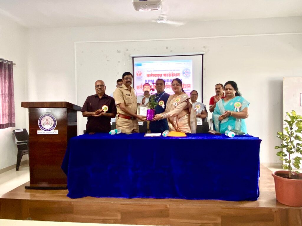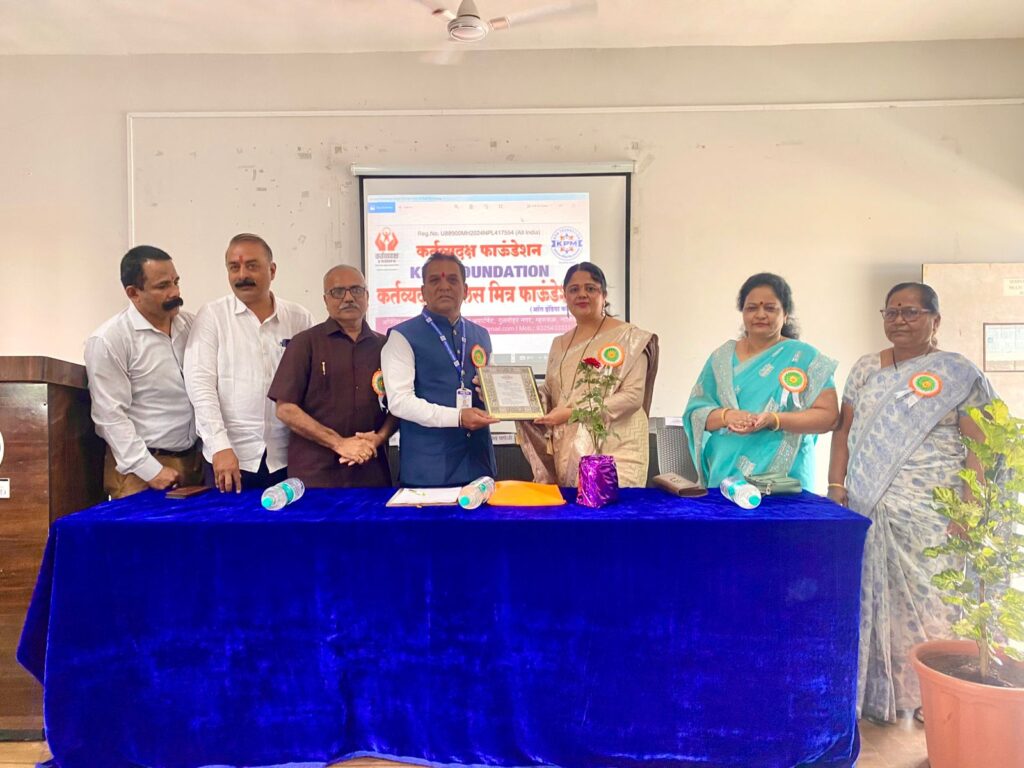 दि. 13 सप्टेंबर शनिवार रोजी कॉलेज ऑफ एज्युकेशन बी.एड.पेठ वडगाव येथील सेमिनार हॉलमध्ये कर्तव्यदक्ष पोलीस मित्र फाउंडेशन अंतर्गत आय कार्ड व नियुक्तीपत्र वाटप सोहळा हा कार्यक्रम सकाळी 11:30 वाजता सुरू झाला. या कार्यक्रमाच्या अध्यक्षस्थानी कॉलेज ऑफ एज्युकेशन बीएड पेठ वडगाव च्या प्राचार्या डॉ. श्वेता सचिन चौगुले (राष्ट्रीय महिला अध्यक्ष कर्तव्यदक्ष पोलीस मित्र फाउंडेशन) तसेच प्रमुख उपस्थितीमध्ये डॉ. सुनील परदेशी (कर्तव्यदक्ष पोलीस मित्र फाउंडेशन संस्थापक अध्यक्ष ), श्री प्रमोद शिंदे पी आय (पेठ वडगाव पोलीस इन्स्पेक्टर), सौ संगीता शिंदे (कर्तव्यदक्ष पोलीस मित्र फाउंडेशन महाराष्ट्र प्रदेशाध्यक्षा महिला), डॉ. संभाजी भोसले(पश्चिम महाराष्ट्र प्रमुख सल्लागार कर्तव्यदक्ष पोलीस मित्र फाउंडेशन) , शाहीन चौगुले (पश्चिम महाराष्ट्र उपाध्यक्ष KPM फाउंडेशन),श्री अशोक पुरोहित (कोल्हापूर जिल्हा अध्यक्ष KPM फाउंडेशन), डॉ. लता पाटील (कोल्हापूर जिल्हा उपाध्यक्ष KPMफाउंडेशन), श्री आनंदा मकोटे (कोल्हापूर जिल्हा उपाध्यक्ष KPM फाउंडेशन), इत्यादी मान्यवर उपस्थित होते. पश्चिम महाराष्ट्र सांगली कोल्हापूर सातारा इत्यादी जिल्ह्यातून विविध पदाधिकारी उपस्थित होते. सर्वांच्या उपस्थितीमध्ये प्रथम प्रतिमापूजन, स्वागत, प्रास्ताविक ,पाहुण्यांची ओळख, मान्यवरांचे मार्गदर्शन, आय कार्ड वाटप व पदनियुक्तीपत्र वाटप, तसेच कार्यक्रमाचे अध्यक्ष यांचे भाषण अशा प्रकारे कार्यक्रम संपन्न झाला .या कार्यक्रमासाठी विविध जिल्ह्यातील 90 पदाधिकारी उपस्थित होते. सर्वांना कर्तव्यदक्ष पोलीस मित्र फाउंडेशनचे पदभार व नियुक्तीपत्र यांचे वाटप करण्यात आले. त्यामध्ये आय कार्ड,बॅच व नियुक्तीपत्र अशा स्वरूपात सन्मान करण्यात आला. कर्तव्यदक्ष पोलीस मित्र फाउंडेशन अंतर्गत काम करत असताना कोणत्या प्रकारे व कसे काम करावे यासाठी कोणत्या नियमांचे पालन करावे याविषयी संस्थेचे अध्यक्ष डॉ सुनील परदेशी यांनी सर्वांना मार्गदर्शन केले. तसेच वडगाव नगरीचे पोलीस इन्स्पेक्टर प्रमोद शिंदे यांनीही पोलीस व पोलीस मित्र संस्थेचे सदस्य यांच्या दरम्यान कसे आंतरसंबंध असले पाहिजेत व कोणत्या प्रकारे सहकार्य वृत्तीतून काम केले पाहिजे याविषयी मत मांडले. कार्यक्रमाच्या अध्यक्षा डॉ. श्वेता चौगुले यांनी हे सर्व पदाधिकाऱ्यांना कर्तव्यदक्ष पोलीस मित्र मध्ये काम करत असताना कोणत्या स्वरूपाचे काम केले पाहिजे याविषयी योग्य ते मार्गदर्शन केले तसेच कार्यक्रम घेण्यामागील उद्देशही त्यांनी सांगितला. सर्व पदाधिकाऱ्यांना शुभेच्छा व कर्तव्यदक्ष पोलीस मित्र फाउंडेशन मध्ये काम करण्यासाठी प्रोत्साहन दिले. कार्यक्रमाचे सूत्रसंचालन छा