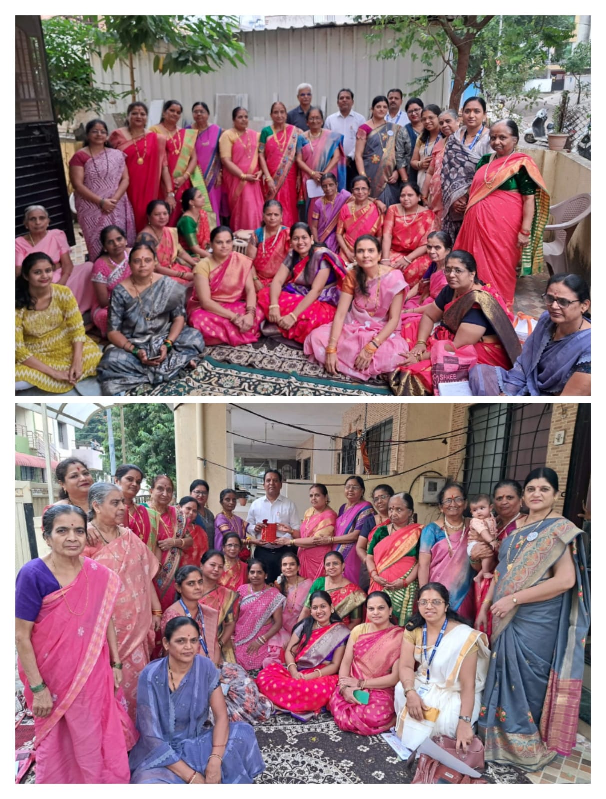 कर्तव्यदक्ष पोलीस मित्र फाउंडेशन नाशिक तर्फे दिनांक 27 सप्टेंबर 2025 रोजी, म्हसरूळ येथे दुर्गादेवी भजनी मंडळातील तब्बल 25 महिलांचा गुलाब पुष्प आणि सर्टिफिकेट देऊन सत्कार करण्यात आला. तसेच दुर्गादेवी भजनी मंडळाकडून देखील कर्तव्यदक्ष पोलिस मित्र फाऊंडेशनचे संस्थापक अध्यक्ष श्री सुनिल परदेशी सर यांचा पुस्तक व गुलाबपुष्प देऊन सन्मान करण्यात आला. दुर्गादेवी भजनी मंडळाच्या संचालिका आणि अध्यक्षा सुचेता देवरे मॅडम, सीमा कुलकर्णी, मंगला अगस्ते, वैजयंती पुराणिक, सुगंधा शुक्ल, वैशाली शुक्ल माधवी अगस्ते, रेखा अगस्ते, अनिता बोरसे, अनिता ओझरकर, जयश्री आहेर, वंदना वाघ, कल्याणी देशपांडे, कल्पना बोराडे, क्षमा भसे,चित्रा देव, पुष्पा खैरनार, सुप्रिया गुंडे, सुरेखा दीक्षित ,नेहा कुलकर्णी, शुभांगी शिंदे, कविता हिंगे, प्रमिला चांदवडकर आदींचा सन्मान करण्यात आला, तसेच त्यावेळी सर्वांनी भजन आणि वाद्यांच्या तालावर ठेके धरले आणि नृत्याचा आनंद घेतला. त्याप्रसंगी कर्तव्यदक्ष पोलीस मित्र संस्थेचे संस्थापक अध्यक्ष मा.श्री सुनील परदेशी सर, राजेंद्र आहेर, आरती ताई आहिरे, ॲड सौ कामिनी भानुवंशे,अलकनंदा जोशी, प्रिया कुंभार, स्नेहा शिंपी आदी उपस्थित होते. श्री व सौ सिमा कुलकर्णी यांनी अतिशय सुंदर पद्धतीने आदरतिथ्य केले व आपल्या संस्थेच्या सर्व पदाधिकारी यांना यामध्ये सहभागी करून घेतला