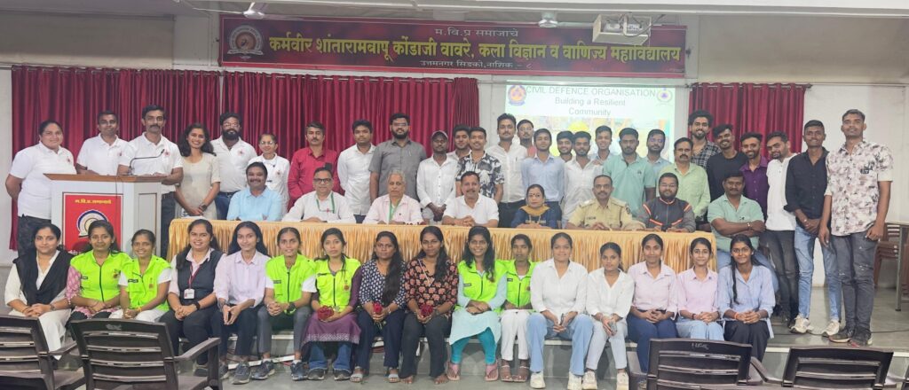 दि. 3 ऑक्टोबर रोजी महाराष्ट्र शासन (गृह विभाग) नागरी संरक्षण नाशिक *कपॅसिटी बिल्डिंग प्रशिक्षण पाठ्यक्रम क्रमांक 05/2025 कोर्स घेण्यात आला. हा कोर्स 24 सप्टेंबर 2025 ते 3 ऑक्टोबर 2025 पर्यंत के. एस. के. डब्लू कॉलेज सिडको नाशिक येथे घेण्यात आला. उपनियंत्रक श्री अतुल जगताप यांच्या मार्गदर्शन खाली घेण्यात आला. या कोर्स साठी एकूण 40 विध्यार्थी स्वयंसेवक यांनी सहभाग घेतला.या पाठक्रम साठी सहाय्यक उपनियंत्रक श्री देवेंद्र बावस्कर व मास्टर ट्रेनर साक्षी निकुंभ यांनी प्रशिक्षण दिले. आपत्ती यवस्थापन, क्षमता बांधनी, रेस्क्यू, प्रथम उपचार, अग्नीक्षमन, ई विविध विषयांवर प्रशिक्षण दिले . शेवटच्या दिवशी लेखी व प्रात्यक्षिक परीक्षा घेण्यात आली. शेवटच्या सत्रात समारोप कार्यक्रम घेण्यात आला या मध्ये अध्यक्षस्थानी के एस के डब्लू कॉलेज चे प्राचार्य डॉ एस. के.कुशारे सर होते व उप प्राचार्य श्री घुले सर प्रमुख पाहुणे होते. सोबत पंचवटी विभाग क्षेत्ररक्षक श्री मनोहर जगताप, अंबड विभाग क्षेत्ररक्षक डॉ योगेंद्र पाटील, सहाय्यक उपनियंत्रक श्री देवेंद्र बावस्कर,भद्रकाली विभाग क्षेत्ररक्षिका मंगला काकड व मास्टर ट्रेनर साक्षी निकुंभ उपस्थित होते. कार्यक्रम चे सूत्रसंचालन स्वयंसेविका हर्षाली अडांगळे हिने केले. सर्व मान्यवरांचे पुष्पगुछ व पुस्तक देऊन सन्मान करण्यात आला. त्यानंतर स्वयंसेवक ज्ञानेश्वर खोलमकर, डॉ संदीप काकड, सपना हानवते, पुजा बोचरे, तेजश्री गटकळ यांनी मनोगत व्यक्त केले. मंगला काकड, डॉ योगेंद्र पाटील, मनोहर जगताप यांनी स्वयंसेवकांना मार्गदर्शन केले. व नंतर कार्यक्रम चे अध्यक्ष प्राचार्य डॉ. एस. के.कुशारे सर यांनी मार्गदर्शन केले. कार्यक्रम च्या शेवटी श्री देवेंद्र बावस्कर सर यांनी मान्यवरांचे आभार व्यक्त केले. सर्वांचा ग्रुप फोटो घेऊन कोर्स ची सांगता करण्यात आली.