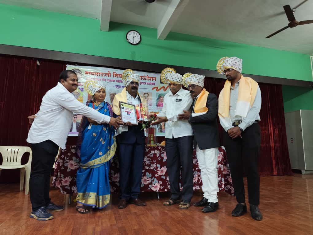 नाशिक. माय माऊली शिवशक्ती फाउंडेशन व दैनिक भारत नॅशनल चैनल चे उद्घाटन तर्फे दिला जाणारा महाराष्ट्र गौरव रत्न हा राज्यस्तरीय सन्मान यावर्षी आंबेडकर चळवळीतील सामाजिक कार्यकर्ते त्यांना समाज भूषण, जीवन गौरव रत्न, कोरोना योद्धा, महात्मा गांधी कौन्सिल अवार्ड पालघर, महाराष्ट्र कोहिनूर रत्न, स्वराज्य शूरवीर जिवाजी महाले पुरस्कार, साई कला समाजभूषण सन्मानित, समाज क्रांती पुरस्कार सन्मानित, सत्यशोधक पुरस्कार गांधी फिश फाउंडेशन डॉक्टर एट पदवी सन्मानित अशा अनेक विविध संस्थांकडून त्यांचा गुण गौरव करण्यात आला डॉ. शाम जाधव केलेल्या उल्लखणीय कार्याची दखल घेत हा सन्मान देण्यात आला हा पुरस्कार महंत भक्ती चरणदास महाराज ज्येष्ठ पत्रकार रायगडचे अध्यक्ष सत्यमेव चे संपादक श्री जयप्रकाश पवार सर माय माऊली शिवशक्ती फाउंडेशनचे अध्यक्ष डॉक्टर संदीप काकड व सिंधुताई काकड, कर्तव्यदक्ष पोलीस मित्र फाउंडेशनचे अध्यक्ष सुनील सिंग परदेशी तसेच माय माऊली न्यूज चे कार्यकारी संपादक मनीष मुथा सर हरिभक्त परायण याचे श्री रामभाऊ आवारे श्री एडवोकेट विलास आंधळे सर यांच्या हस्ते डॉ. शाम जाधव यांना हा पुरस्कार सन्मानित करण्यात आले त्याप्रसंगी मेघाताई शिंपी, राजनंदिनी आहिरे, वैशाली सकपाळ, डॉ.प्राजक्ता जठार, रमेश गिरी वंदे महाराष्ट्र न्यूज उपसंपादक नाशिक, सौ कल्पनाताई सोनार, योग गुरु बाळासाहेब मोकळ, संगीता मिसळ अहिल्यानगर, अँकर अश्विनी पुरी, वामन शिंदे वंदे महाराष्ट्र न्यूज प्रतिनिधी बागलाण सटाणा भास्कर सायमन नेवासा जेष्ठ कवी व चंदन बाफना अहिल्यानगर आदी मान्यवर या प्रसंगी उपस्थित होते
