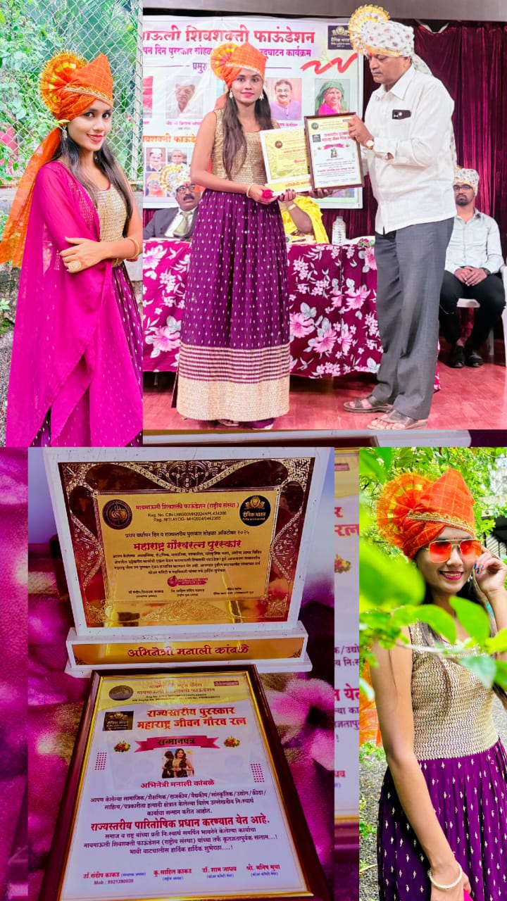 पुण्यातील अभिनेत्री मनाली कांबळे यांना महाराष्ट्र जीवन गौरवरत्न पुरस्कार सन्मानित